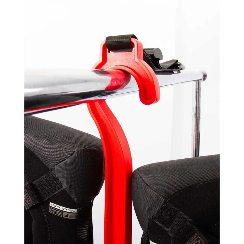 Diseñado específicamente para sujetar y secar escarpines, guantes y un gorro de neopreno.