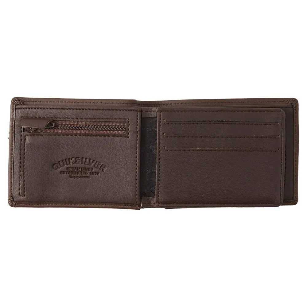 Esta billetera de cuero plegable para hombre es una valiosa adición a la colección de accesorios Quiksilver.