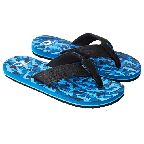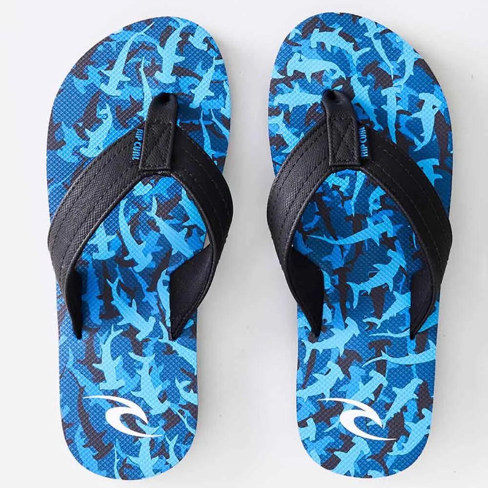 La sandalia para niños Ripper es una correa de nobuck sintético con detalle de costuras clásicas. El divertido arte de la pantalla de temporada está impreso en una plantilla blanda que es perfecta para cada grom.