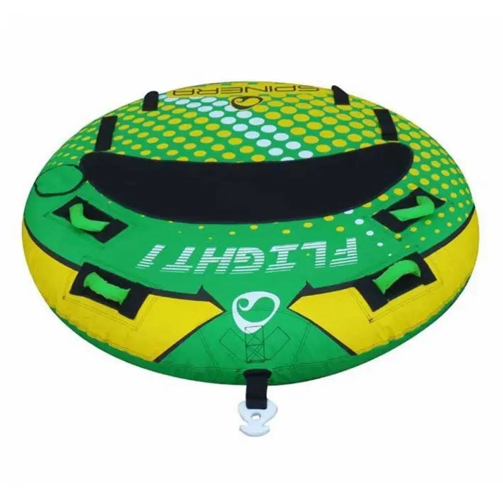 Este flotador requiere un ticket. Diseñado por las 3 F: Rápido, Divertido y Vuelo. Este flotador está hecho para las más altas exigencias y durabilidad. Está completamente cubierto en una funda de nylon, el ojo de la barra de tiro está cosido en varios puntos de tiro y las suaves asas de nylon con almohadillas de neopreno debajo representan la excelente calidad de Spinera. La nueva serie Flight es la elección correcta para aquellos que quieren llegar más alto. También como isla de baño, un sueño.