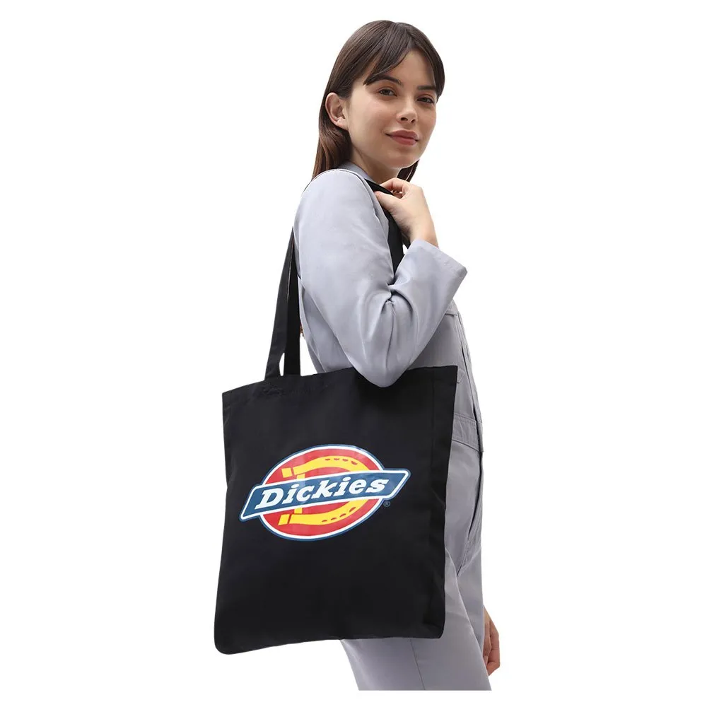 Laukku on valmistettu kestävästä puuvillakankaasta, ja siinä on sivulla näyttävä Dickies-logon painatus.