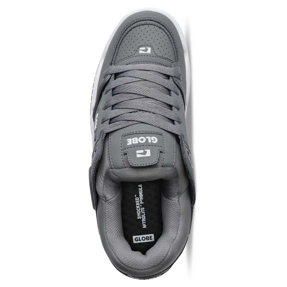 Globe Fusion on täynnä suorituskykyyn rakennettuja teknisiä ominaisuuksia. Kestävyys on sen ytimessä, ja siinä on strategisesti sijoitettu TPR-ollie-vahvike ulkosivulla, kriittisellä kulutusalueella, joka kestää jatkuvaa kitkaa griptapesta. Tämä pidentää merkittävästi kengän käyttöikää. Takana vankka TPR-kantapään vakaaja ympäröi kantakuppia, tarjoten poikkeuksellista rakenteellista tukea, estäen kantapään puhkeamisen ja lukiten jalkasi tiukasti paikoilleen tarkan hallinnan takaamiseksi temppujen ja laskeutumisten aikana. Kenkä on rakennettu tukevalla kuppipohjarakenteella, joka tunnetaan ylivoimaisesta kestävyydestään ja erinomaisesta iskunvaimennuksestaan, tehden siitä täydellisen valinnan aukkojen ja portaiden skeittaamiseen.