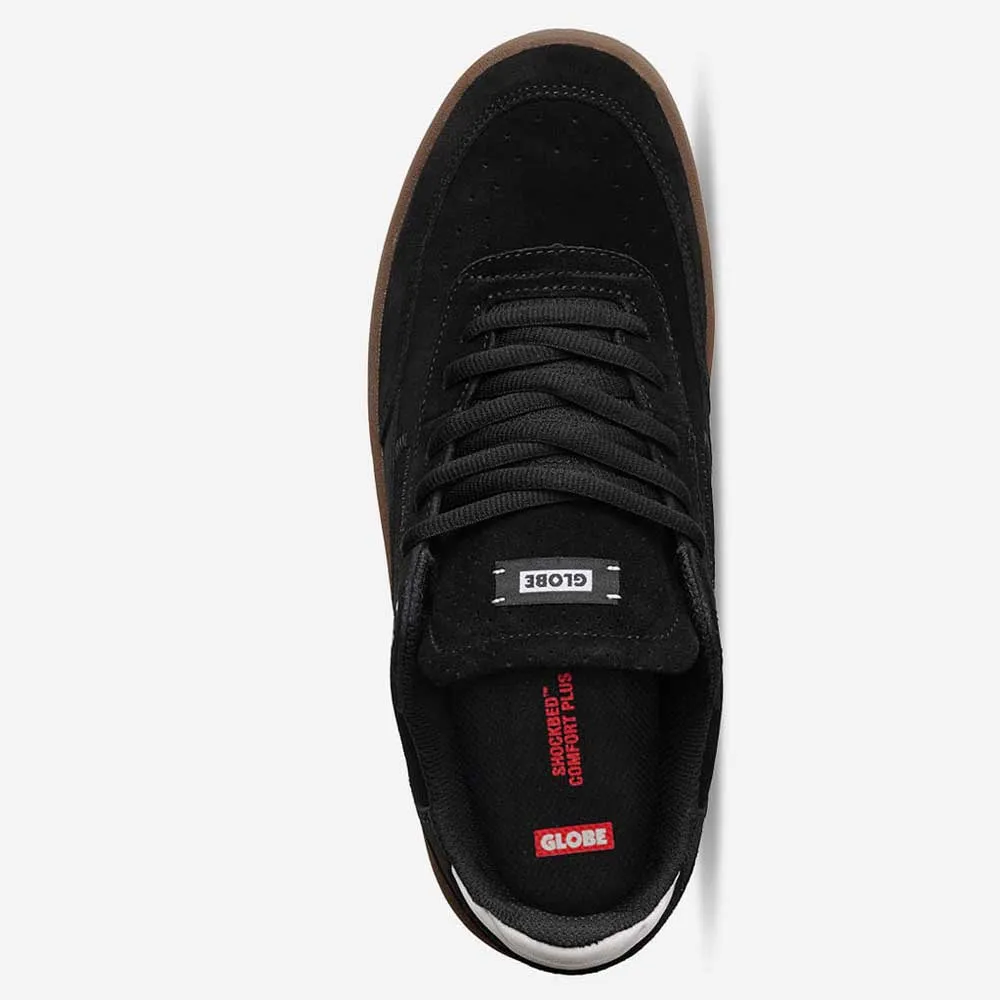 Holand on Globen elämäntapaan sopiva, kuppimaisen pohjan omaava skeittikenkä, jossa on kalanruotokuvioitu ulkopohja pitoa ja hallintaa varten, rei´itys kärjessä hengittävyyden parantamiseksi ja uudistettu neopreenista valmistettu kantapää mukavuutta ja vakautta varten.