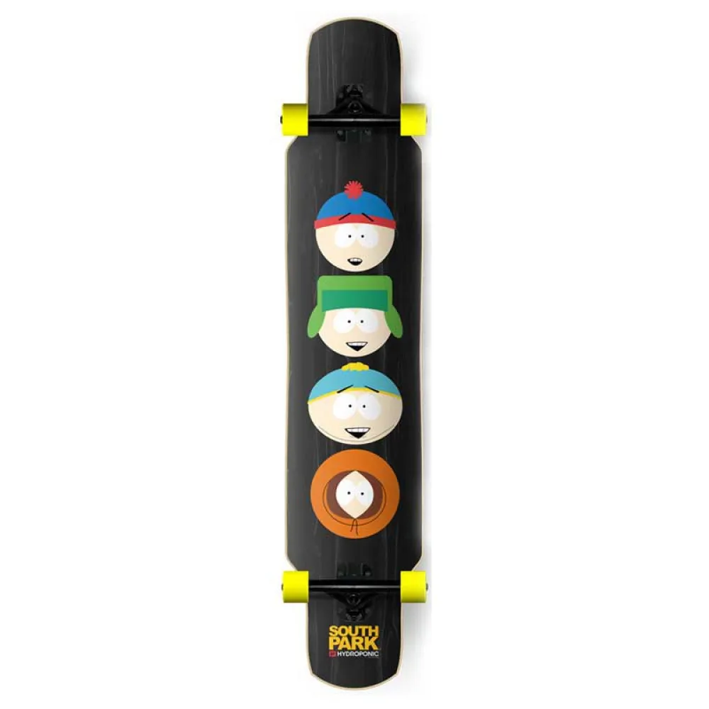 SOUTH PARK Virallinen yhteistyö Dancing Board 46´´ x 9´´, 7 kerrosta Hard Rock Canadian Maple + 1 lasikuitu, 180ª käännetty musta truck.