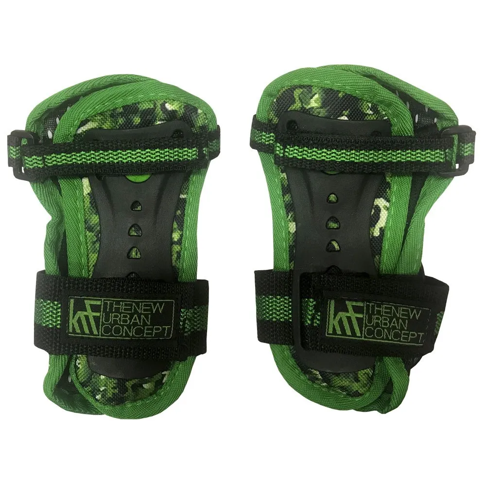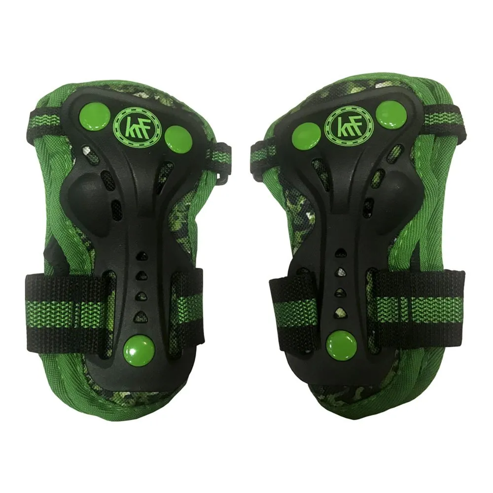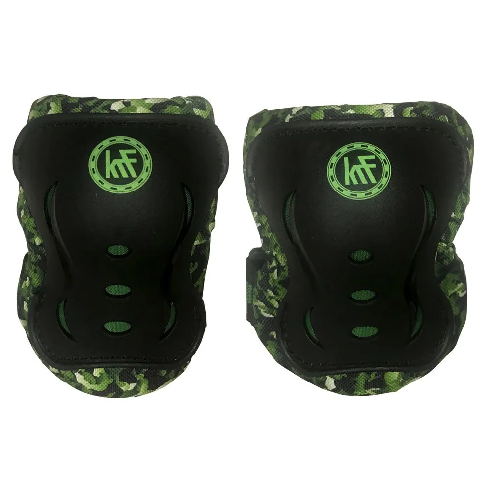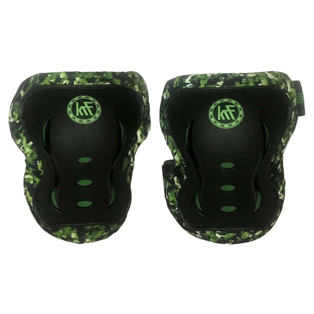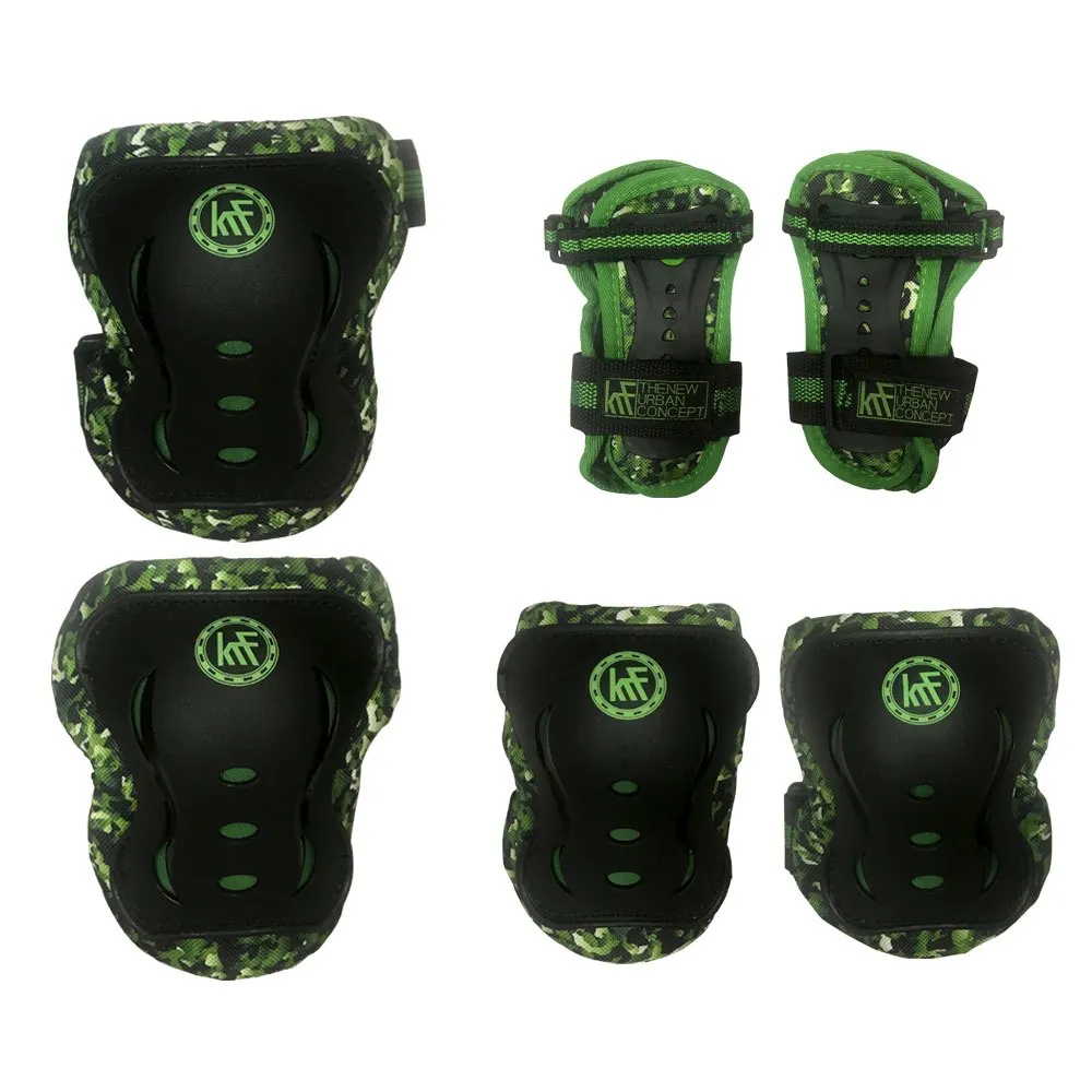Suojasarja luistelulle Polvisuojat + kyynärpääsuojat + rannesuojat vihreällä naamiointivärillä suojaamaan iskuilta urheilun aikana pojille ja tytöille.