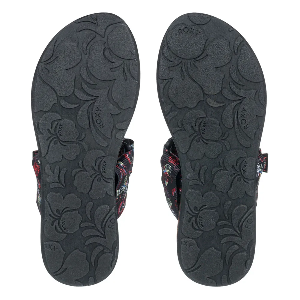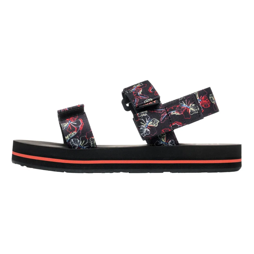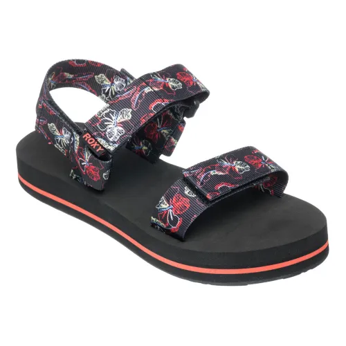 Kierrätetty tekstiilipäällinen, Tarrakiinnitteinen ja säädettävä hihnakiinnitys sivulla ja kantapäässä, Pehmeä EVA-pohjallinen ROXY-logolla ja kumipohja vintage ROXY -painatuksella