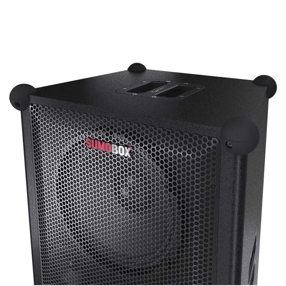 Päästä valloilleen valtava, huoneen täyttävä ääni Sharp SumoBox Pro CP-LS200:lla, joka on äärimmäinen korkean suorituskyvyn juhlakaiutin, suunniteltu olemaan minkä tahansa tapahtuman sydän. Suunniteltu niille, jotka eivät suostu tinkimään äänenlaadusta, SumoBox Pro tuottaa huikeat 200 wattia RMS-tehoa, varmistaen, että jokainen isku tuntuu ja jokainen nuotti kuullaan henkeäsalpaavan selkeästi, olitpa sisällä tai ulkona. Tämän kaiuttimen ytimessä on Devialetin SAM® (Speaker Active Matching) -teknologia, vallankumouksellinen ääni-innovaatio, joka takaa ennennäkemättömän bassotoiston ja tarkkuuden. Tämä hienostunut prosessointi mahdollistaa kahden 10-tuumaisen bassoelementin ja kahden 3-tuumaisen diskantin toistavan ääntä poikkeuksellisella rikkaudella ja syvyydellä, ilman säröä edes maksimiäänenvoimakkuudella.