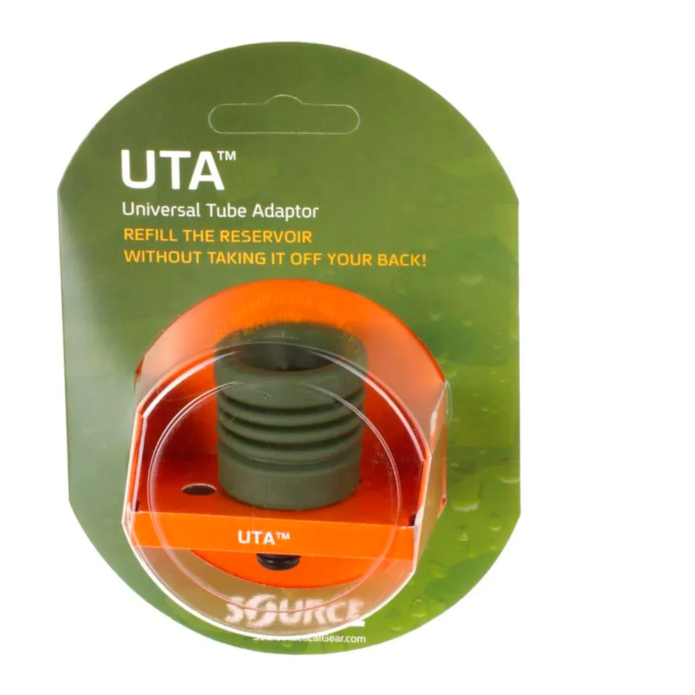 Tämä uraauurtava varuste on yksi tärkeimmistä nesteytyssovittimista, joita toimija voi kantaa mukanaan. UTA liitetään suoraan SOURCE-nesteytysjärjestelmäsi juomaletkuun QMT™ (Quick Mate Technology) -liittimen kautta. Sen nerokas muotoilu mahdollistaa turvallisen, tiiviin liitoksen useisiin eri vesilähteisiin. Joustava kumisuutin sopii tiiviisti hanojen päälle, kun taas sisäkierteet yhdistyvät turvallisesti useimpiin kaupallisiin vesi- ja limupulloihin. Vesi virtaa lähteestä suoraan rakkoosi, ja järjestelmä irtoaa automaattisesti, kun säiliö on täynnä, estäen ylitäytön ja sotkuiset roiskeet.