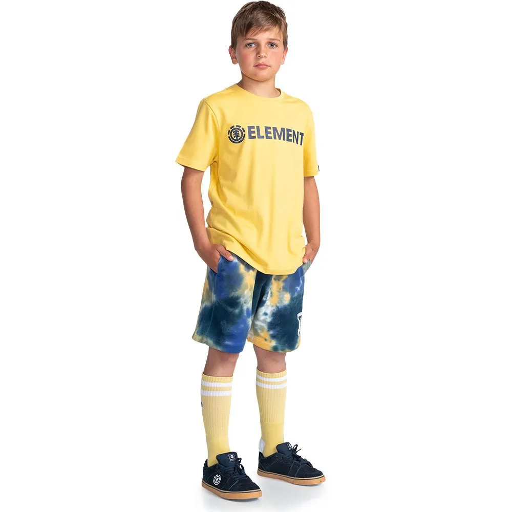 Short élastiqué, imprimé floqué bas de jambe, poches latérales, une poche arrière, cordons plats en coton, patte latérale, écusson logo arbre au dos.