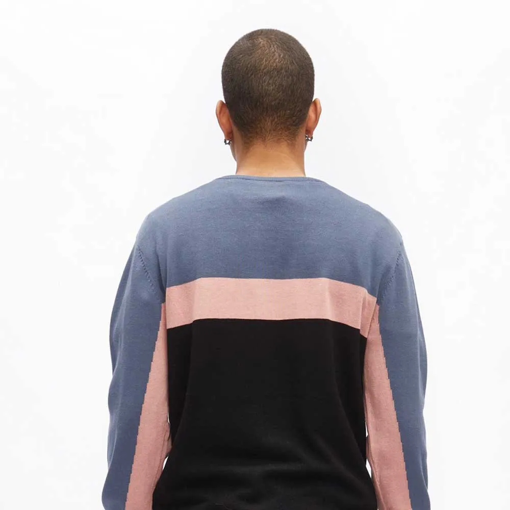 Le Montauk est un pull en maille douce à col rond, confectionné en jauge 12 et doté d´empiècements contrastés teints en fil (Y/D) pour un look hivernal classique et élégant.