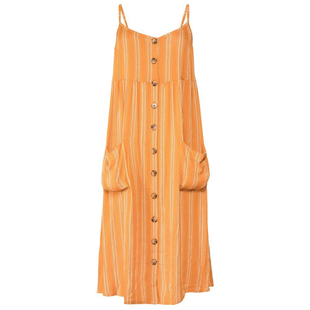 Découvrez la magnifique Salma by Protest. Une grande tendance pour cet été est les boutons et cette robe a des boutons sur le devant. Fabriqué en 100% viscose, le tissu est léger et confortable. Imprimé avec un design rayé, il y a des poches profondes sur les côtés de la robe. Les bretelles sont réglables. La robe dans laquelle vous vivrez cet été, la Salma by Protest.