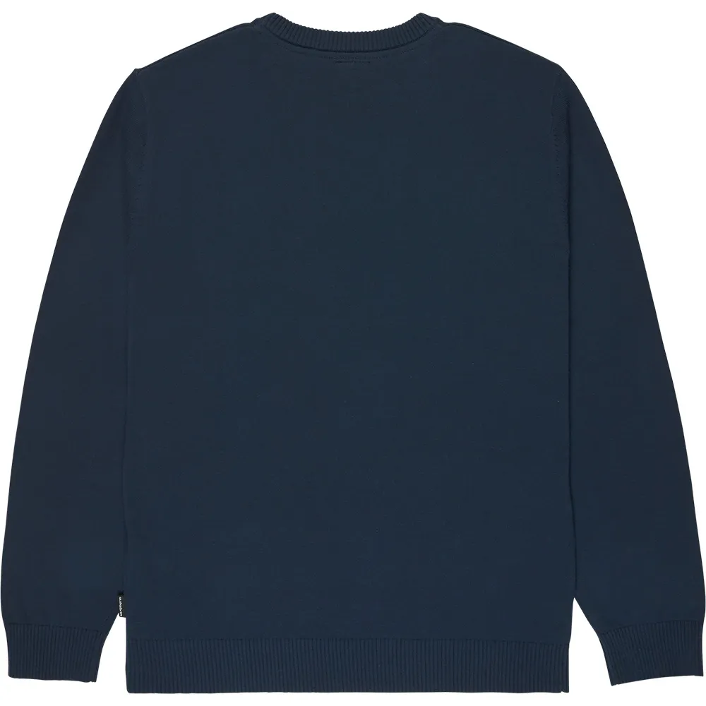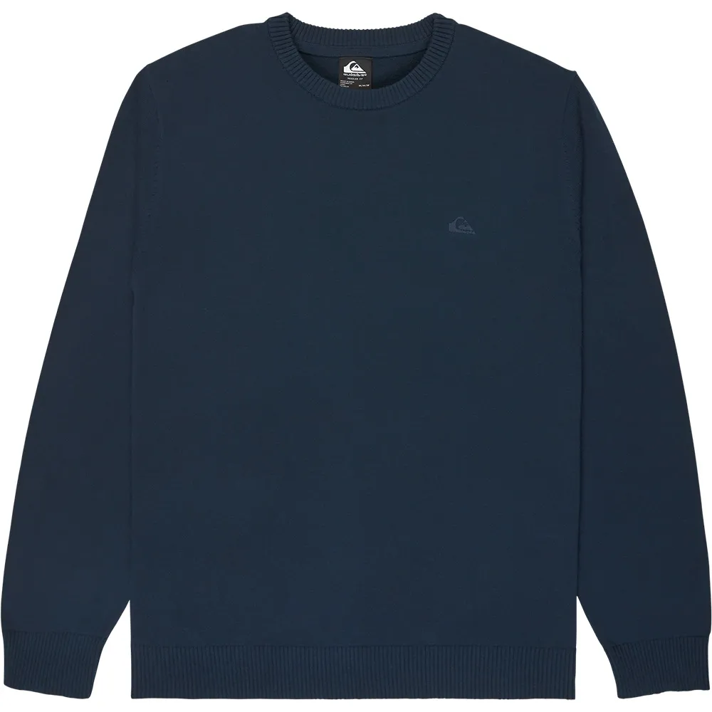 Tissu : Coton 12GG, Coupe : Classique, coupe régulière confortable, Col : Col rond, Col, poignets et bas en maille côtelée, Logo Quiksilver brodé sur la poitrine gauche, Étiquette tissée Quiksilver recyclée cousue sur la couture latérale.