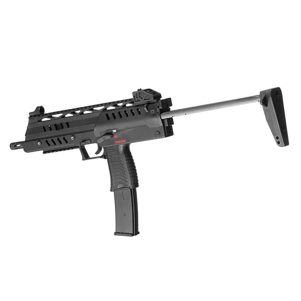 La réplique possède une crosse repliable qui vous permet de régler la longueur en fonction de votre morphologie et de vos préférences. L´article est équipé d´un rail Picatinny pour le montage de modules d´amplification lumineuse et de désignateurs laser. Ces rails sont situés sur le dessus et à l´avant de la réplique (des deux côtés et sous le canon).