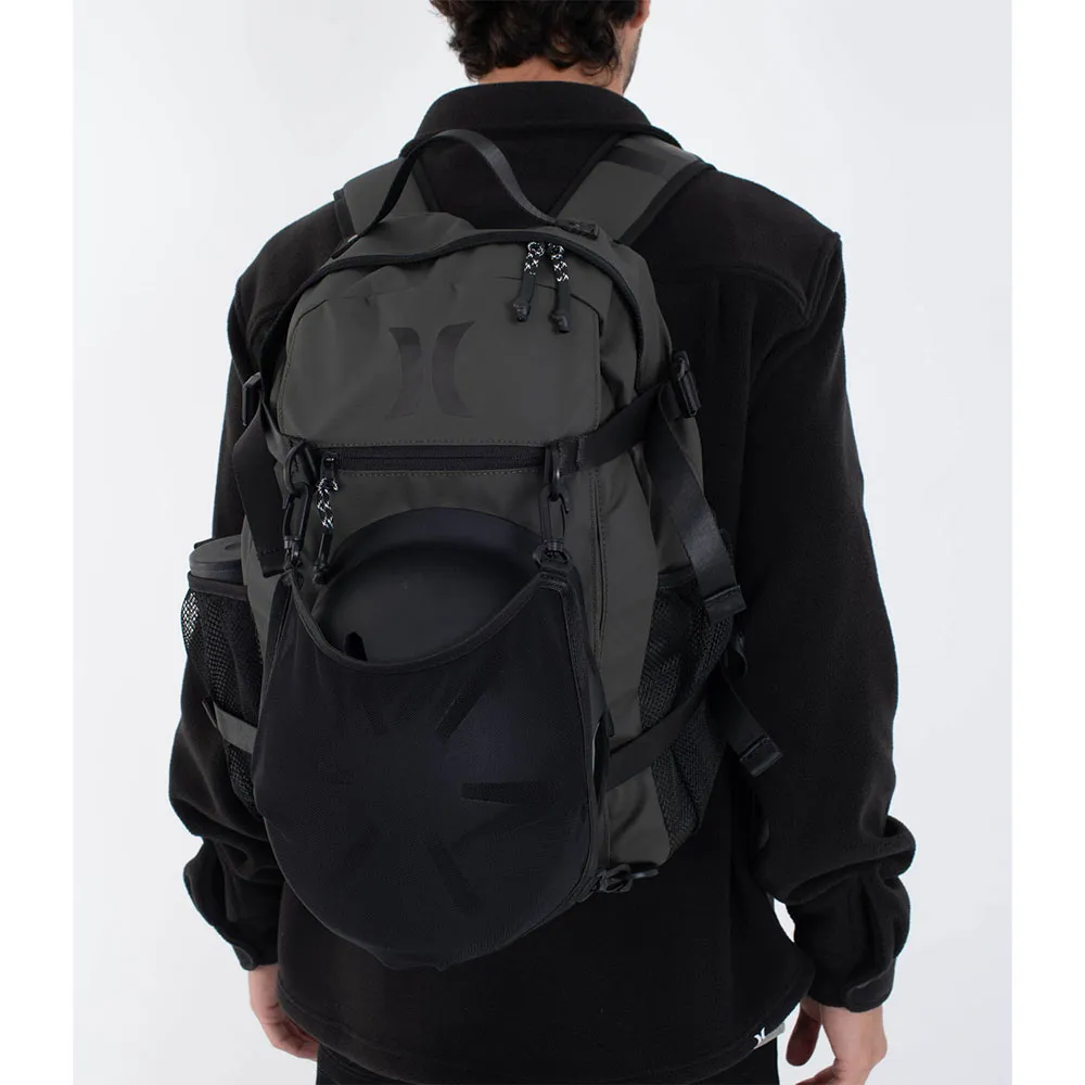 Progettato per l´azione, questo zaino presenta una tasca in rete pensata per contenere in modo sicuro il tuo casco, insieme a un´ampia tasca frontale con zip e scomparti laterali in rete per gli oggetti essenziali. Le cinghie di compressione regolabili ti permettono di personalizzare la vestibilità, mentre gli spallacci imbottiti offrono un comfort duraturo. Rifinito con un dettaglio del logo Hurley sul davanti.