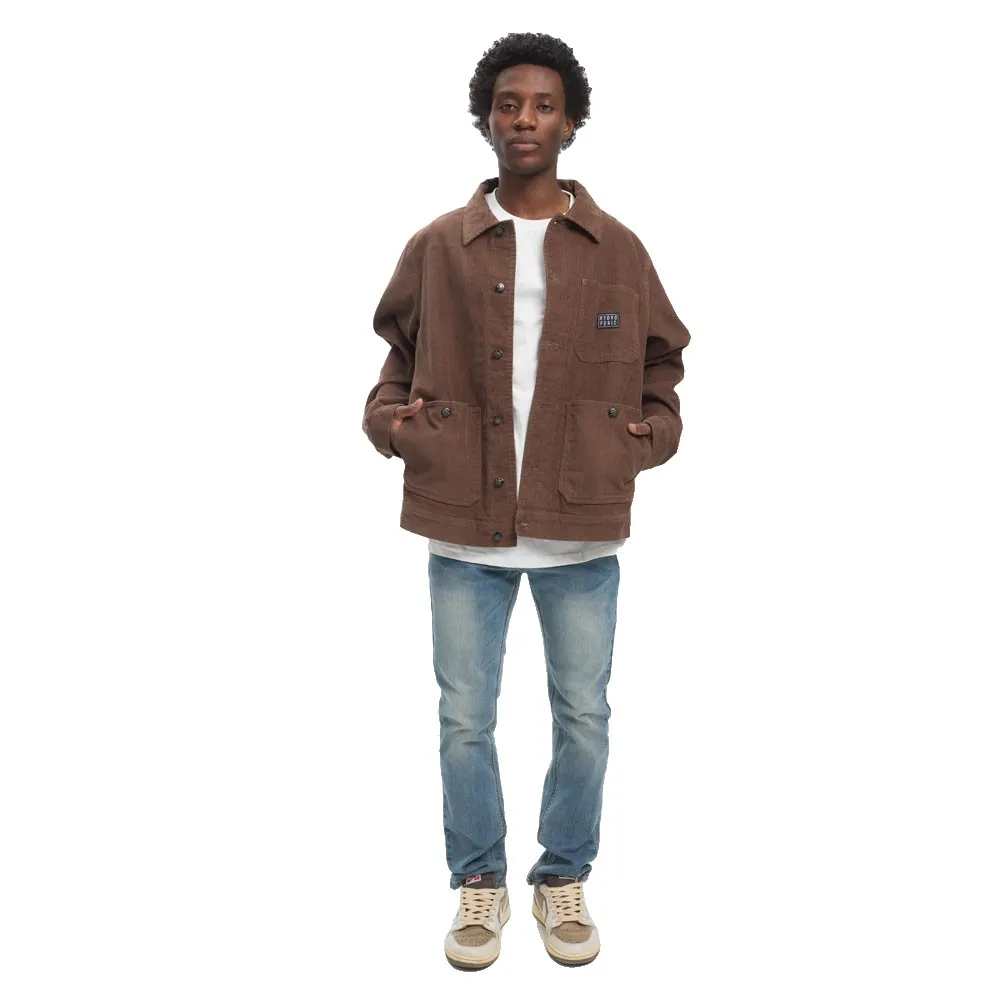 Design camicia-giacca in velluto a coste spesso per stratificazione versatile e calore.