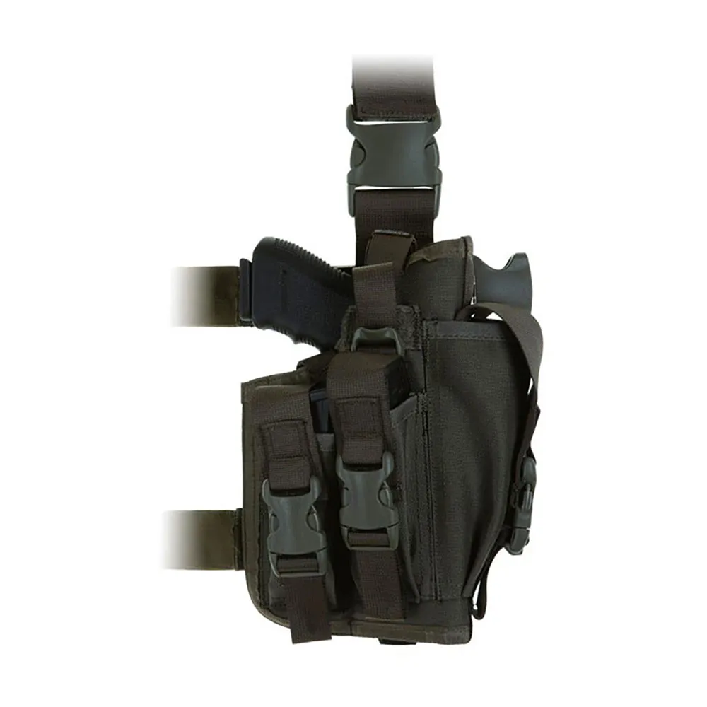 - La fondina SOF è dotata di tre tasche integrate per caricatori (una è sovradimensionata e può contenere anche un silenziatore) e un pannello per la gamba integrato - fissato con una clip da cintura e cinturini elastici alla coscia.