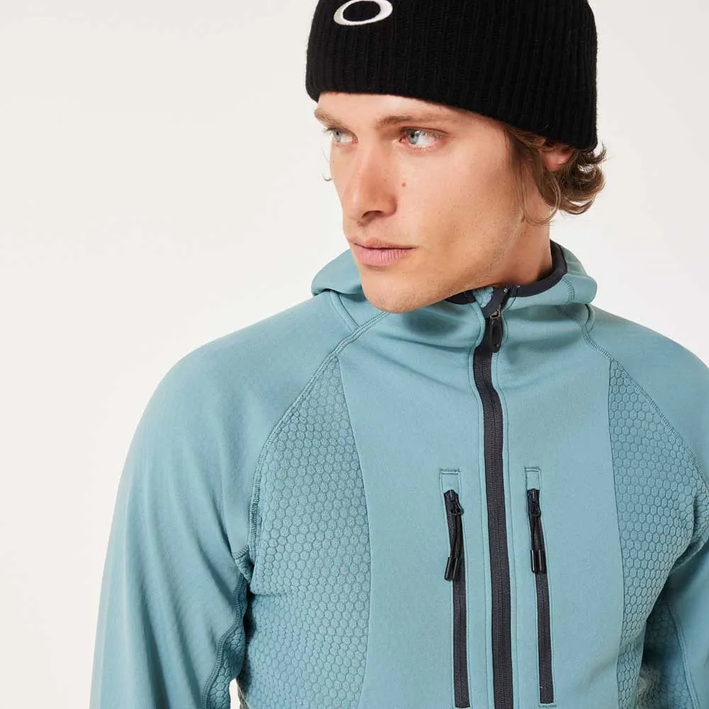 Preparati per l´avventura. Il tuo strato intermedio super funzionale, essenziale per la stagione e ideale per il backcountry è qui. La felpa con cappuccio Drift Tech Fleece da uomo è un capo performante dalla vestibilità aderente che ti porta da vetta a vetta. Parte della nostra collezione con lo sciatore freestyle olimpico Colby Stevenson, questo pile presenta bordi elastici sul cappuccio, sui polsini e sull´orlo per tenerti più caldo e adattarsi facilmente sotto un guscio. Abbiamo tessuto pannelli jacquard extra resistenti sotto ogni braccio per uno stile a contrasto e una maggiore durata dove serve. Le tasche sul petto e laterali ti permettono di riporre gli oggetti in modo sicuro; i fori per i pollici mantengono le mani calde mentre regoli gli attacchi o cerchi snack. Chiudi la zip e parti.