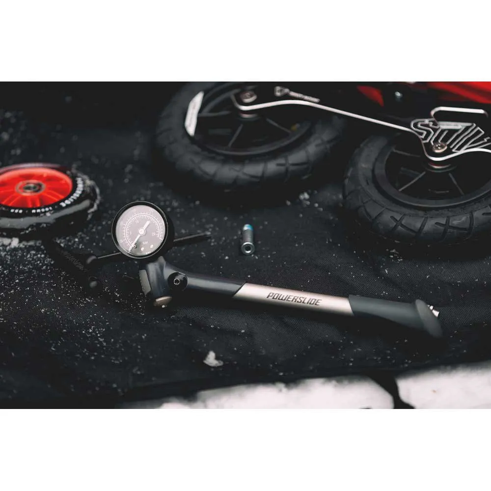 La mini pompa Powerslide è il dispositivo ideale per piccoli pneumatici ad aria dove lo spazio per la valvola è solitamente molto limitato.