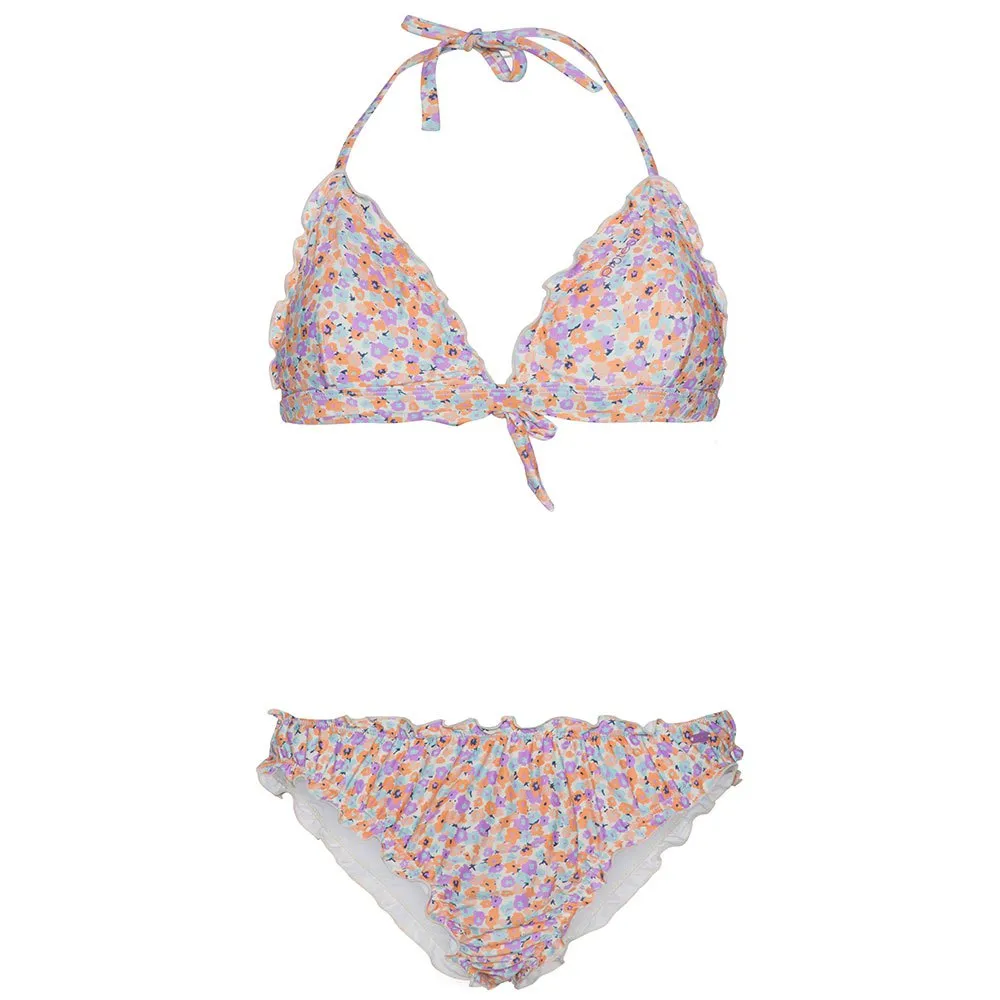 Slip bikini regolare, Top bikini a triangolo, Tessuto sostenibile, Senza PFC, Vestibilità regolare, Fantasia floreale, Vita regolare, Senza coppe, Chiusura sul retro, Senza ferretto, Non sagomato, Imbottitura removibile, Senza push up, Coppe Quickdry, Protezione UPF 50.