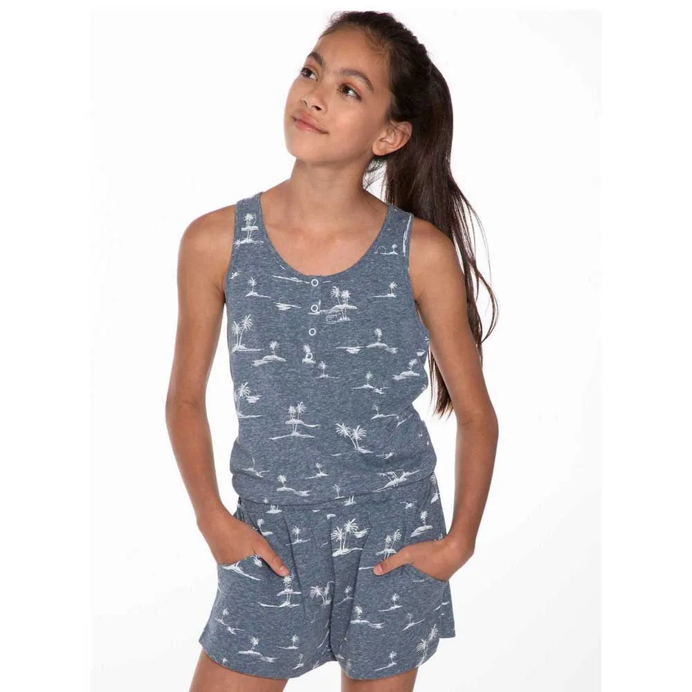Dai un'occhiata al favoloso Honey JR di Protest. Il tessuto melange è stampato con un disegno di un'isola tropicale. C'è una breve abbottonatura al collo con bottoni a pressione. La tutina ha uno stile racerback. La vita è elasticizzata e sono presenti comode tasche laterali. Perfetto per la tua estate al sole, Honey JR di Protest.