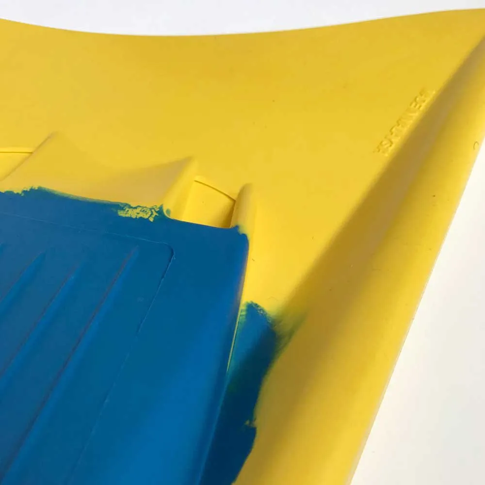 La vivace combinazione di colori blu e giallo aggiunge un elemento di stile alla tua attrezzatura da surf, rendendola visivamente accattivante. I colori vivaci rendono anche più facile individuare la tua tavola in acqua e possono migliorare ulteriormente la tua esperienza di surf complessiva.