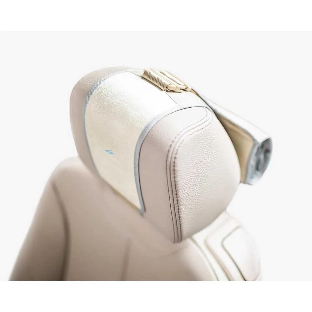 La cinghia avvolge il poggiatesta e rimane in posizione per fissare la sezione di copertura al sedile quando è estesa o riposta.