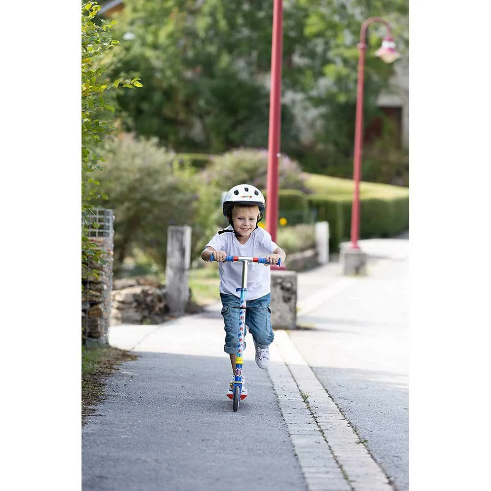 Dotato di un manubrio regolabile in altezza, lo scooter a due ruote si adatta alle dimensioni del bambino in tre fasi. Il freno ad attrito sulla ruota posteriore e le maniglie di sicurezza con protezione dagli urti garantiscono ulteriore sicurezza. Spidey e i suoi super amici si trovano in motivi colorati sugli adesivi inclusi. Il design del battistrada è antigraffio incorporato nel metallo. Lo scooter può essere ripiegato per risparmiare spazio, così come le maniglie possono essere ripiegate e lo scooter può essere facilmente trasportato e riposto. Il telaio in metallo extra forte garantisce un piacere di guida sicuro. Il grande divertimento per il tempo libero per un sano movimento e tanto buon umore! La popolare serie Marvel "Spidey e i suoi super amici" mostra le emozionanti avventure del supereroe Spidey e dei suoi eroici amici, che hanno tutti poteri da super ragno: senso del ragno, super forza, capacità di strisciare sui muri e altro ancora. Nel frattempo, ogni eroe porta qualcosa di unico nell'avventura contro i cattivi, e quando lavorano insieme come Spider Team, sono ancora più forti!