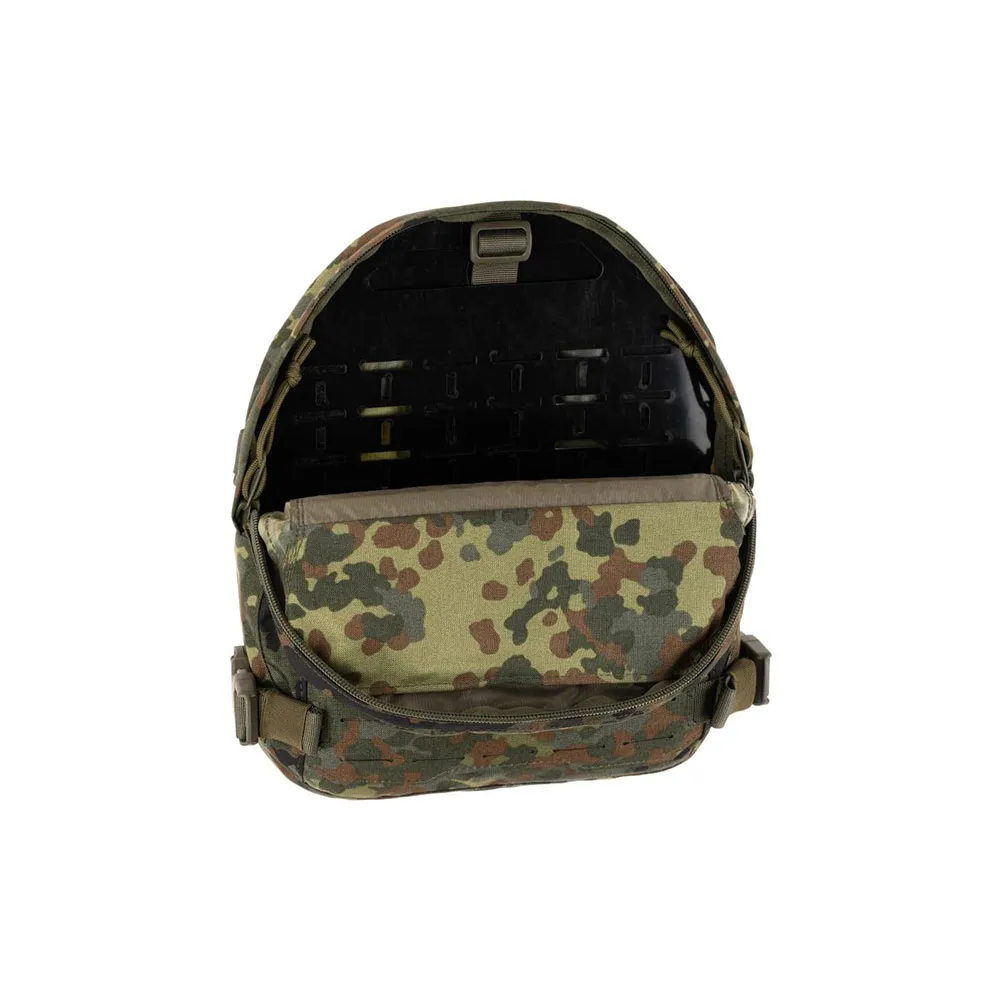Progettata per un´integrazione perfetta, questa tasca si attacca saldamente a qualsiasi piattaforma compatibile con MOLLE/PALS, come un plate carrier o un chest rig, diventando un´estensione naturale della tua attrezzatura principale. Il suo layout intelligente presenta uno scomparto principale con una parete interna rivestita in velcro, che consente l´attacco di organizer e inserti con retro a gancio per una gestione personalizzata dell´attrezzatura. Una tasca frontale piatta separata è ideale per riporre mappe, documenti o altri piccoli oggetti ad accesso rapido.