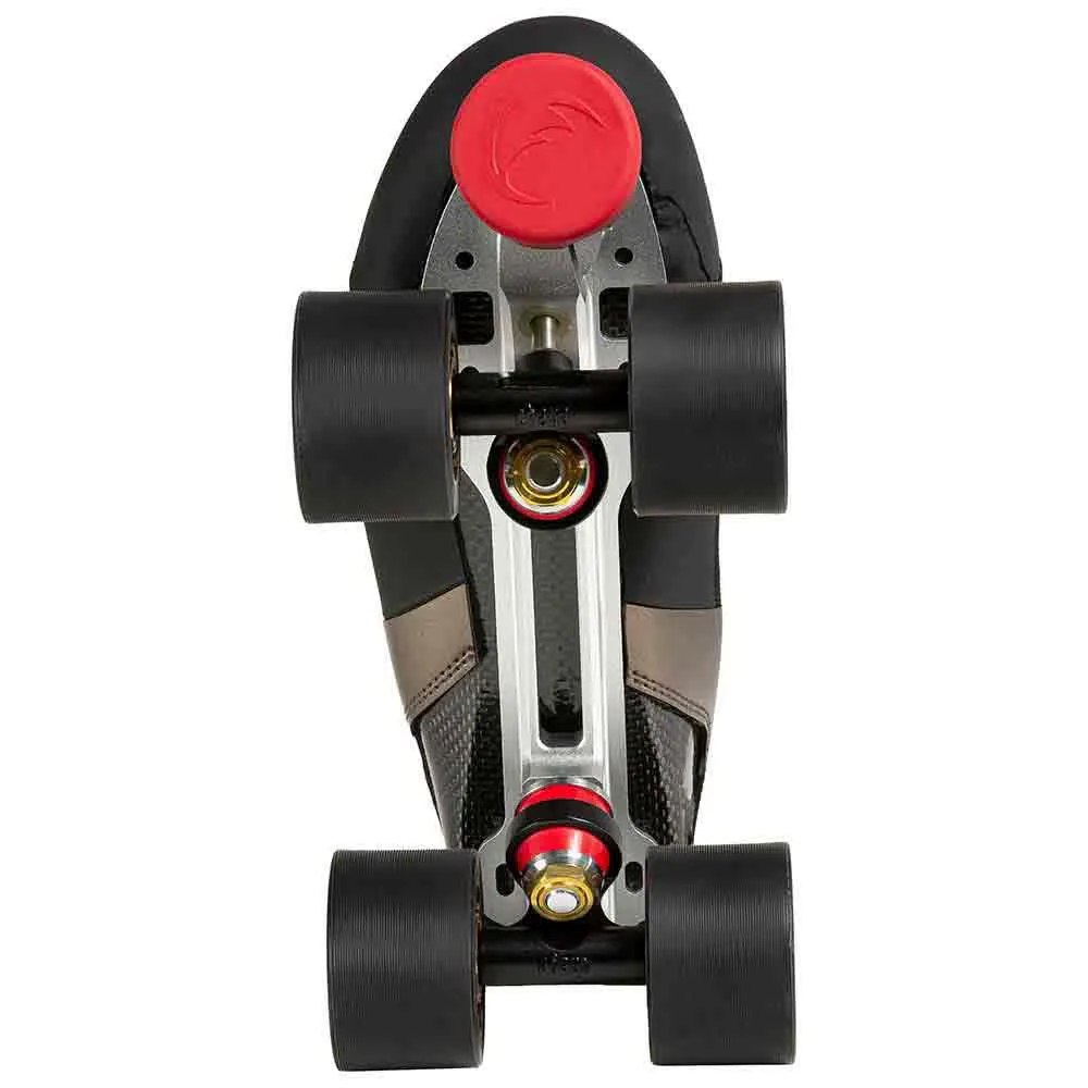 Deze indrukwekkende derby-rolschaats bevat onze eersteklas Shiva-plaat, gemaakt van hoogwaardig vliegtuigaluminium en met gesmede aluminium trucks.