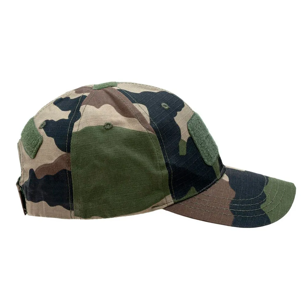 Klassieke Baseball Cap ontworpen om camouflage en bescherming tegen de zon te bieden. Hij is gemaakt van Rip-Stop stof (65% katoen / 35% polyester) waardoor de pet licht en duurzaam is. Hij is ook sneldrogend - of het nu een warme, zweterige dag is of regenachtig weer. Aan de voor-, achter- en bovenkant zijn klittenbandpanelen geplaatst voor eenheids-ID of morele patches. De maat kan worden aangepast met een klittenband aan de achterkant van de pet.