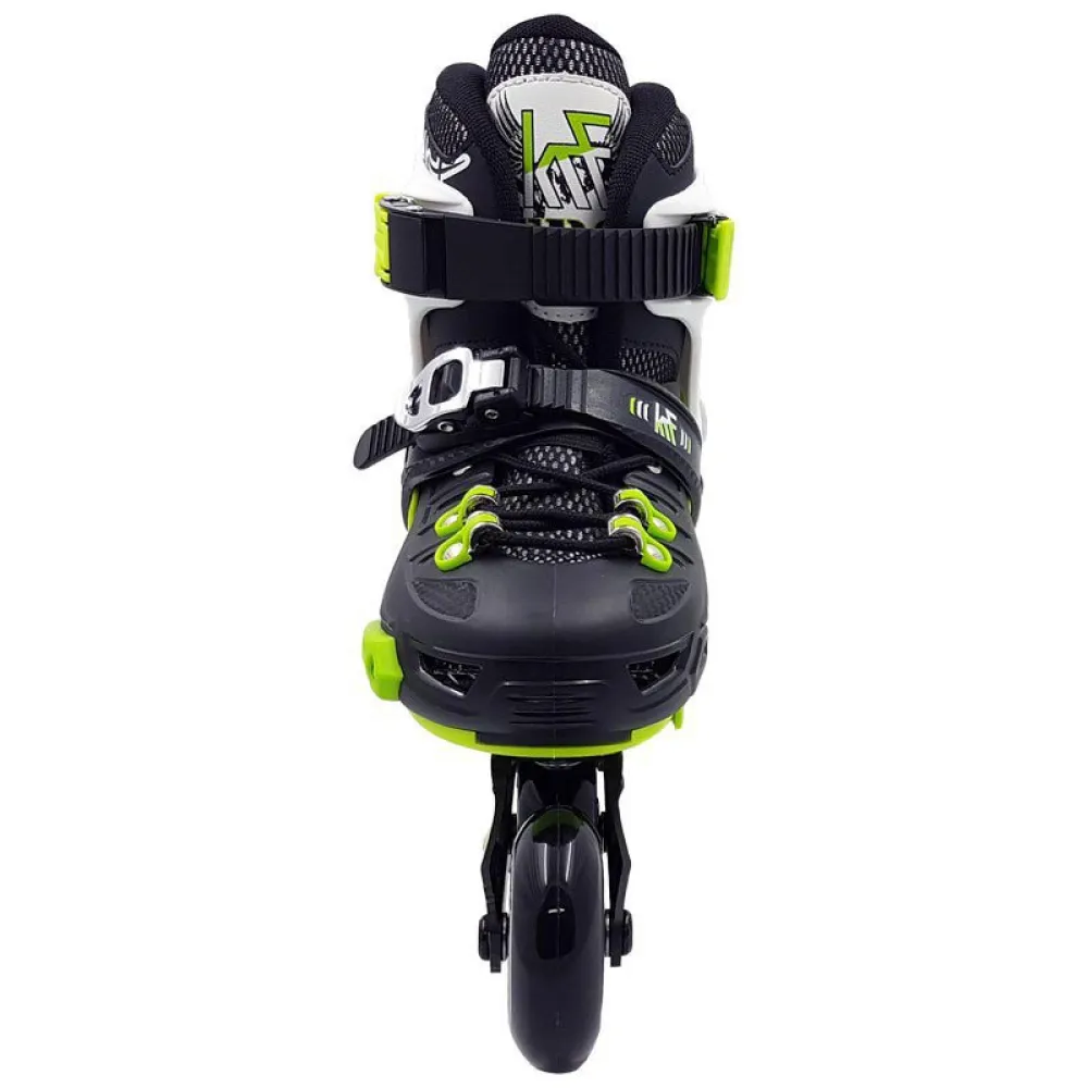 Inline skate. Specialty Freeskate Adjust hard boot. EERSTE NIEUWE model. Gemiddeld gevorderd niveau. Stijve laars met ventilatiesysteem. Manchet van flexibel PP. Gewatteerde tong. Sluiting met dubbele verstelbare micro en veters. Aluminium gids skate maat. PU Casting 85A wielen skaten. Voor outdoor freestyle gebruik.
