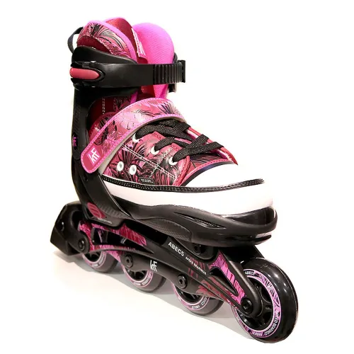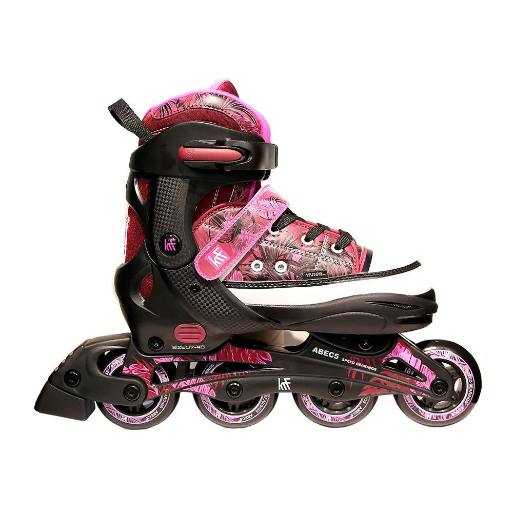 Inline skate, semi-zacht verstelbaar. Outdoor Fitness Specialiteit. Verstelbare zachte laars. JUNGLA-model. Roze kleur. Beginnersniveau.