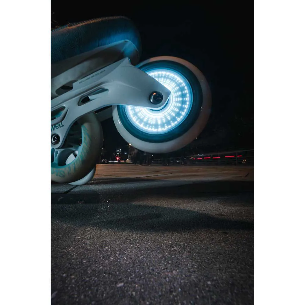 Deze nieuwe Powerslide Graphix 110 witte kleur LED-wielen zullen uw rit verlichten, maar alleen wanneer u dat wilt.