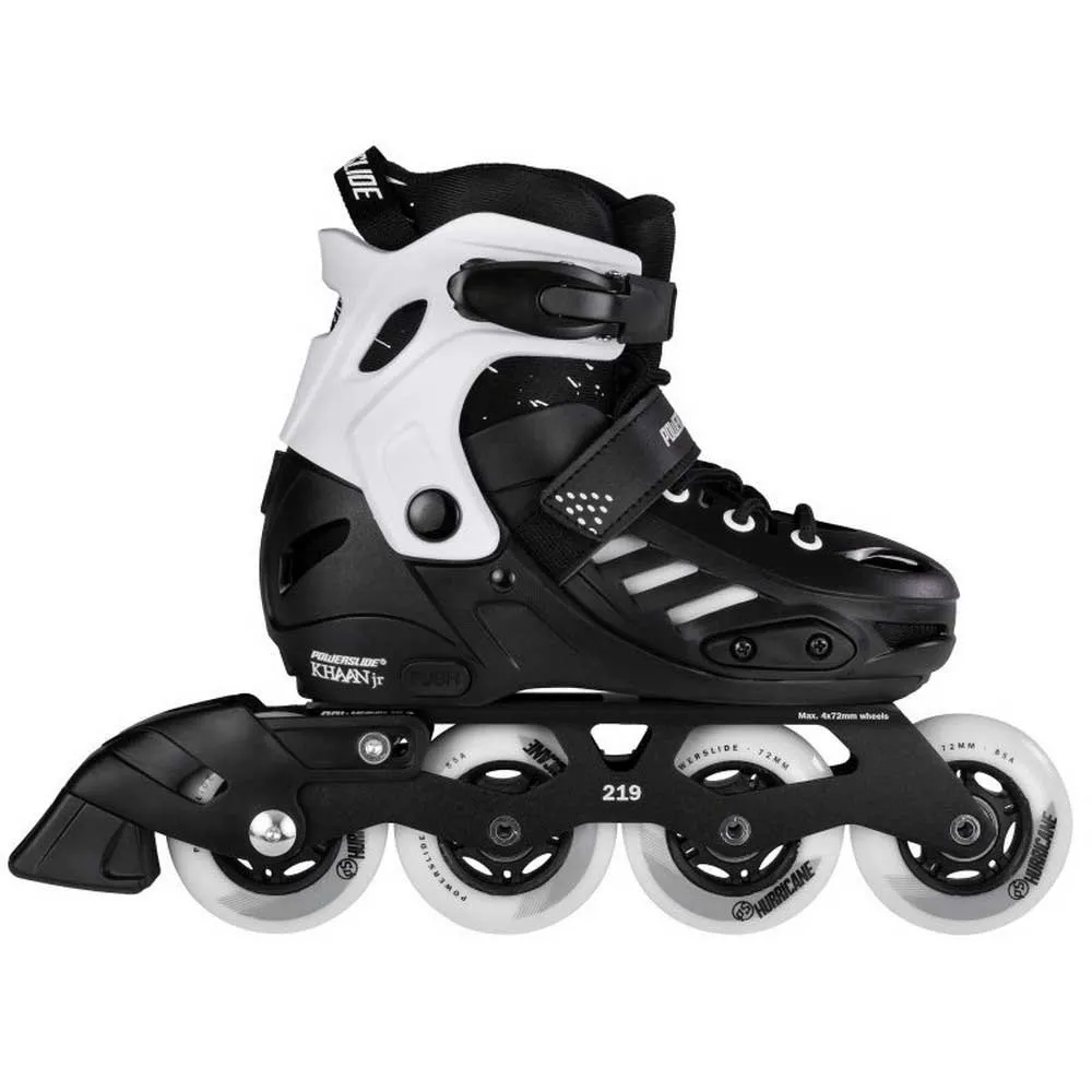 Wees de lokale skateheld met de Powerslide One Khaan Junior Sqd Skate! Deze stevige allround skate met harde schaal schreeuwt om actie en wil gebruikt en misbruikt worden! Veel plezier tijdens het cruisen met je vrienden of speel hockey, probeer de eerste freestyle-moves of leer eenvoudige trucs in het skatepark. De skate is erg duurzaam en biedt superieure ondersteuning. Het frame van deze in 4 maten verstelbare skate voor kinderen kan van links naar rechts worden verschoven om een beter verblijf en evenwicht op de skates te bieden, wat uiteindelijk helpt om sneller en gemakkelijker te leunen om te skaten. De Khaan Junior Sqd is uitgerust met slechte Abec 7-lagers en Powerslide Hurricane Pu-wielen. Plezier en actie zijn gegarandeerd met deze cool uitziende zwart-witte Khaan Junior Sqd-skate van Powerslide.