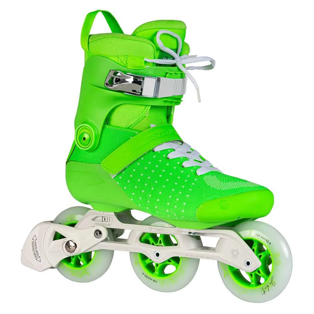 Verbeterde prestaties: Het gepatenteerde TRINITY X 3-punts montagesysteem biedt ongeëvenaarde stabiliteit, controle en krachtoverbrenging, waardoor je sneller en met meer vertrouwen kunt skaten. Snelle en soepele rit: De 3x100mm wielconfiguratie, gecombineerd met hoogwaardige lagers, zorgt voor een snelle, soepele en wendbare skate-ervaring, perfect voor het afleggen van afstanden.