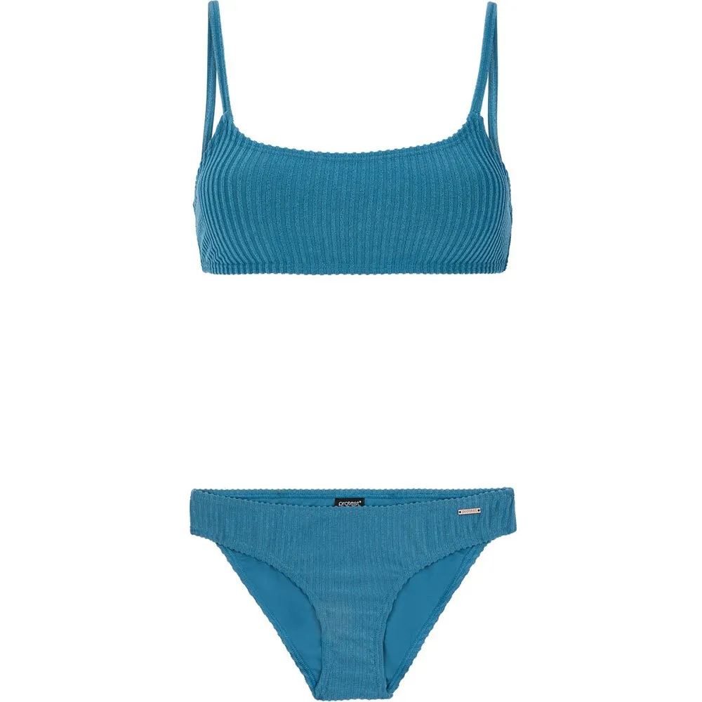 Geniet van je zomer aan het zwembad met de PRTCINE van Protest! Deze prachtige bikin set wordt geleverd met een mooie bralette top met een normale bikinibroekje in dezelfde stof met een subtiel verticaal textuur strepenpatroon.