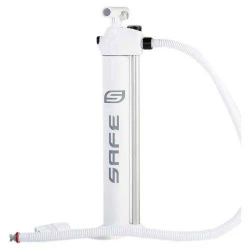 Een gepatenteerde SAFE-pomp met dubbele stroom en luchtmeter voor het opblazen van de opblaasbare supboards, met de mogelijkheid om op te blazen tot een druk van 26 psi. De pomp heeft een ietwat langwerpige vorm, is zeer robuust en heeft de aluminium as; deze eigenschappen maken het geschikt om een tafel in 4/5 minuten op te blazen met een minimum aan inspanning. CAPACITEIT_ 1.8 + 1.8L, max. druk 26 psi volgens DIN EN 16051 EIGENSCHAPPEN_ afdichtingen en anti-zandfilter voor een lange levensduur van pomp en pomp, zuiger met hoge luchtstroom voor een gemakkelijkere inflatie, schakelkraan voor dubbele / enkele actie.