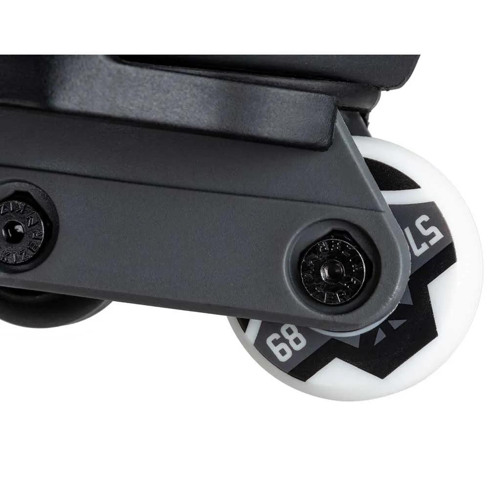 Rollend op een anti-rocker met duurzame 57 mm USD wielen aan de buitenkant van de frames en 100 A grind wielen aan de binnenkant, geeft de skate je voldoende ruimte voor grinds zoals royales en frontsides, terwijl hij nog steeds snel en stabiel is, wat belangrijk is bij het leren doen van big airs en spins.
