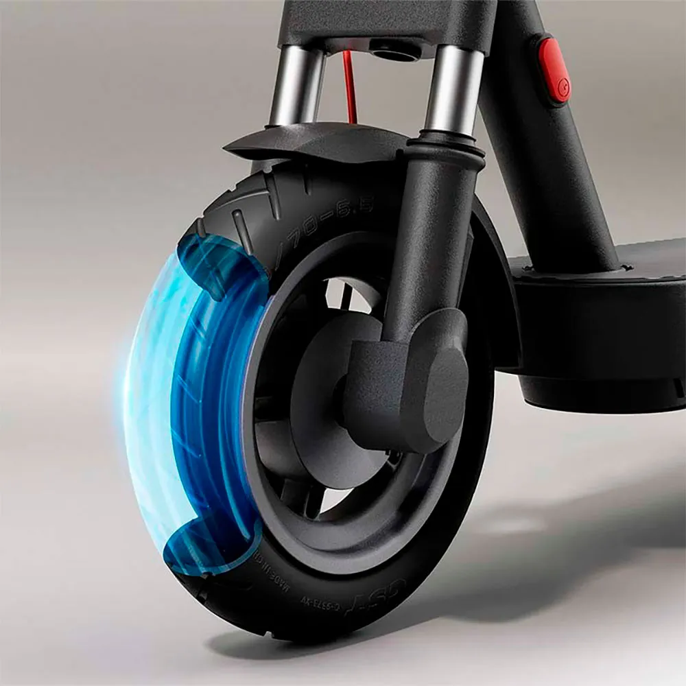 Er is geen twijfel mogelijk: deze vernieuwing van de Xiaomi Elektrische Scooter 4 is ontworpen om een veiligere en stabielere rit te bieden dankzij de tubeless banden met een diameter van 10 inch en een breedte van 60 mm, die een grotere luchtdichtheid en impactabsorptiecapaciteit hebben.