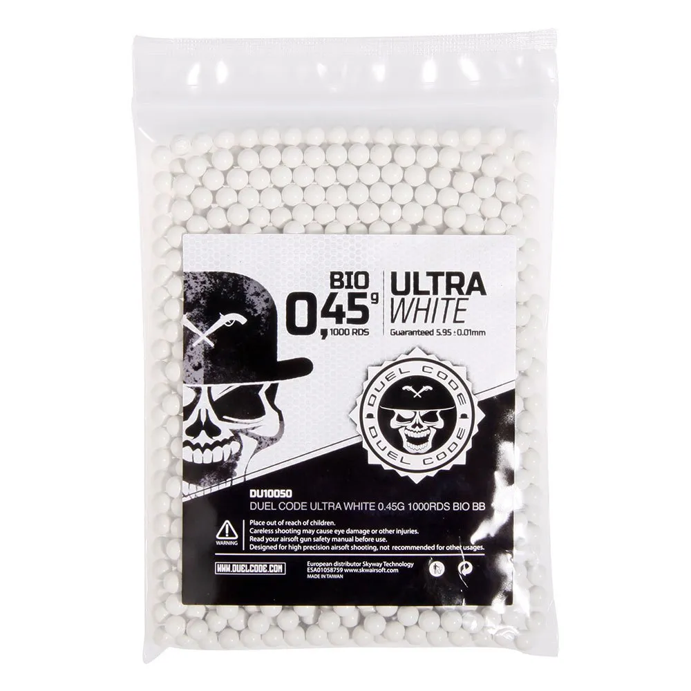 Pakket i en praktisk pose med 1000 skudd, har du den perfekte mengden høykvalitetsammunisjon for en hel dag med strategisk spill For airsoftoperatøren som nekter å kompromisse på kvalitet, presisjon eller miljøansvar, er DUEL CODE 0.45g Bio BB-ene det definitive valget. Dominer feltet, få hvert skudd til å telle, og opplev toppen av airsoftammunisjonsteknologi