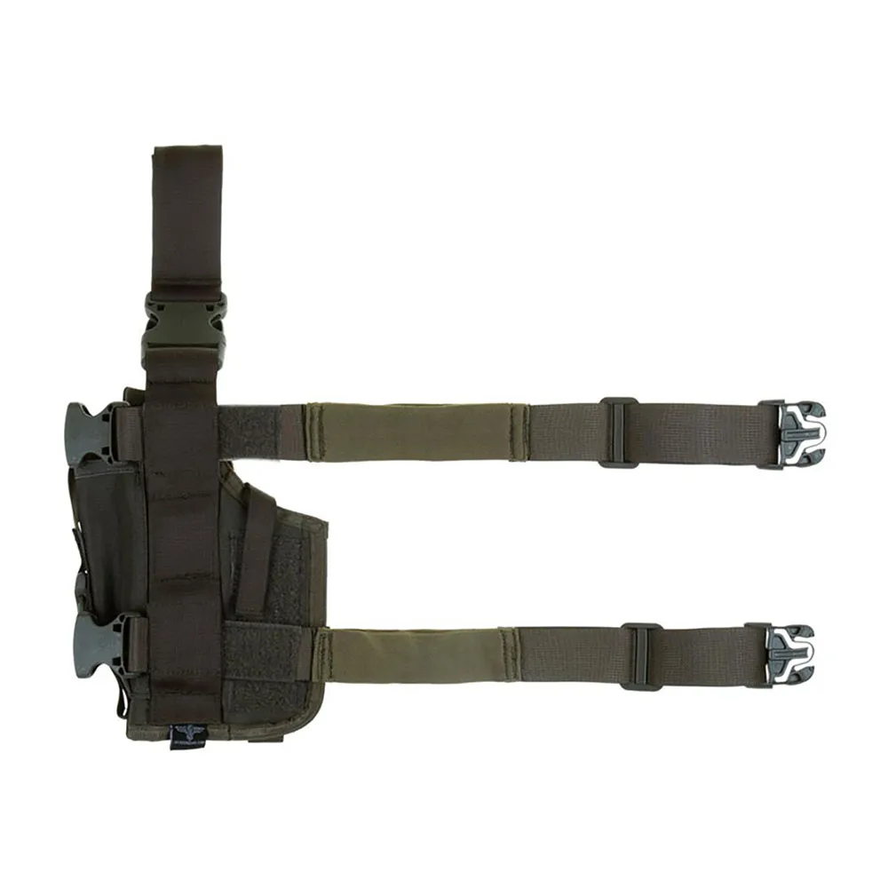 - SOF-hylsteret er utstyrt med tre integrerte magasinlommer (en er overdimensjonert og kan også passe til en lyddemper) og integrert benpanel - festet med belteklips og elastiske stropper til låret.