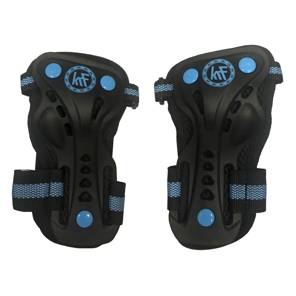 Sett med beskyttelser for skøyter Knebeskyttere + albuebeskyttere + håndleddsbeskyttere i blått for beskyttelse mot støt under sporten til gutter og jenter.
