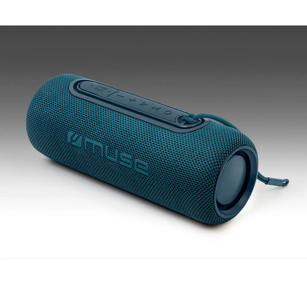 MUSE Bluetooth-høyttaleren Blue er et bærbart og holdbart apparat med et innebygd oppladbart batteri som gir opptil 8 timer kontinuerlig avspilling. I tillegg gjør dens lette og kompakte design den perfekt for bruk på farten, enten du vil nyte musikk på stranden, i parken eller på en biltur.