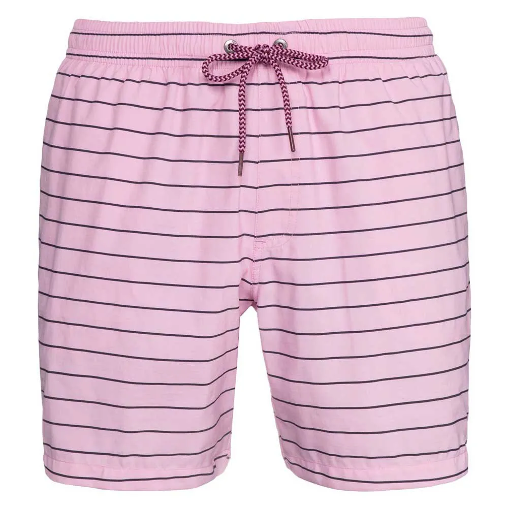 Sharif by Protest er din essensielle strandshort for hver sommer. Sharif har et elastisk linning med lukesnor. Det lette stoffet er trykt med en klassisk stripet design. Baklommen har glidelås lukking for å holde dine nødvendigheter trygge og forsvarlige. Det er en indre glippe for ekstra beskyttelse. Disse flotte strandshortsene er en del av vårt nye størrelse-initiativ. De eneste strandshortsene du trenger i sommer, Sharif by Protest.