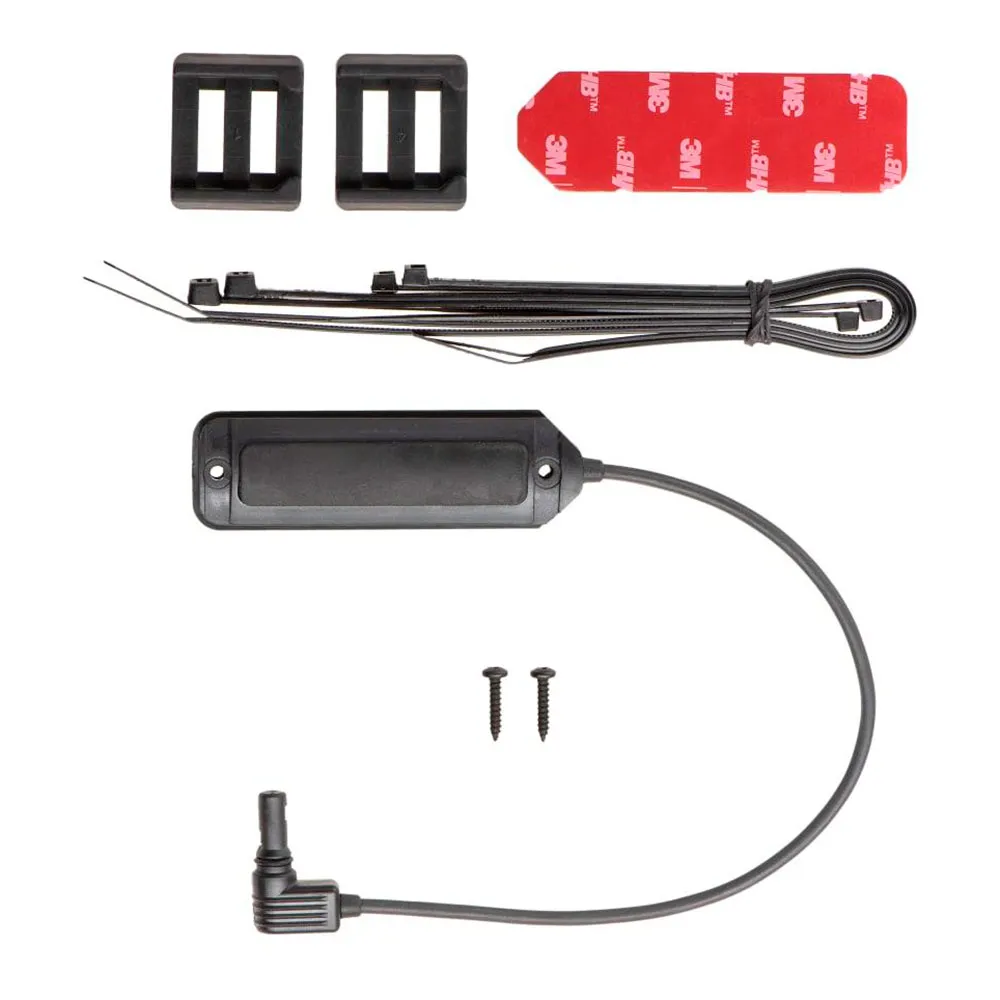 Komplett fjernbryterenhet som inkluderer trykkputen, kabelen og erstatningsbatteriluken.