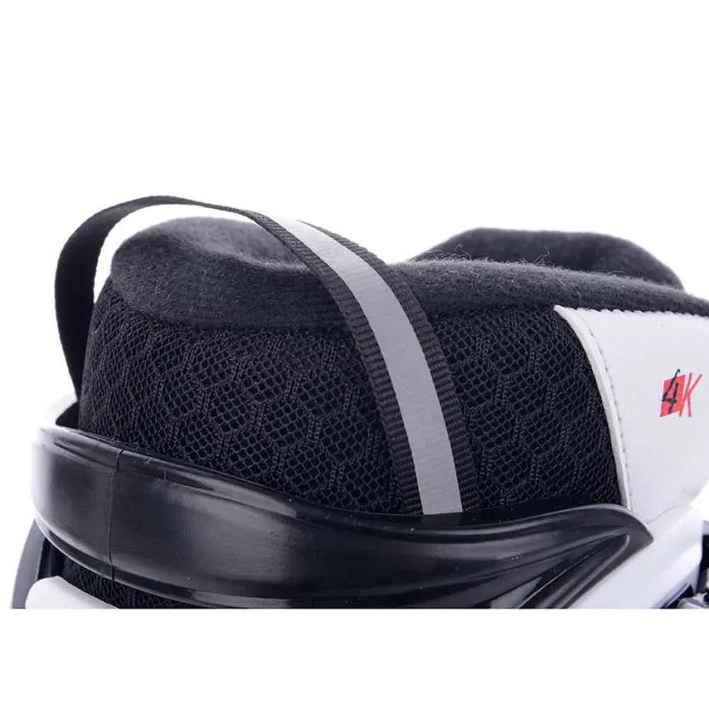 - Skall: Pe/Nylon, 3-deler, myk, én gjensidig spenne, snøring med klafflås, anatomisk plass for ankel, høy forsterket konstruksjon