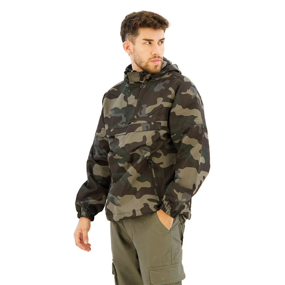 Wiatro- i wodoodporny, siateczkowa podszewka, kaptur ze sznurkiem, duża kieszeń na piersi z zamkiem błyskawicznym, 2 boczne kieszenie zapinane na zamek, mankiety, boczny otwór wentylacyjny, wszystkie zamki błyskawiczne.