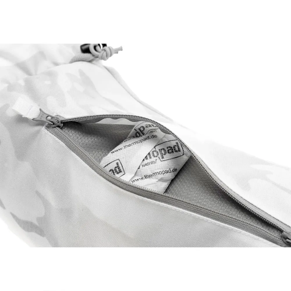 Wyposażony w system mocowania MOLLE, zamykaną na zamek komorę do przechowywania lub na wkładki grzewcze, a także elastyczne mankiety z dzianiny i regulację szerokości, ogrzewacz zapewnia wysoce wydajną izolację.