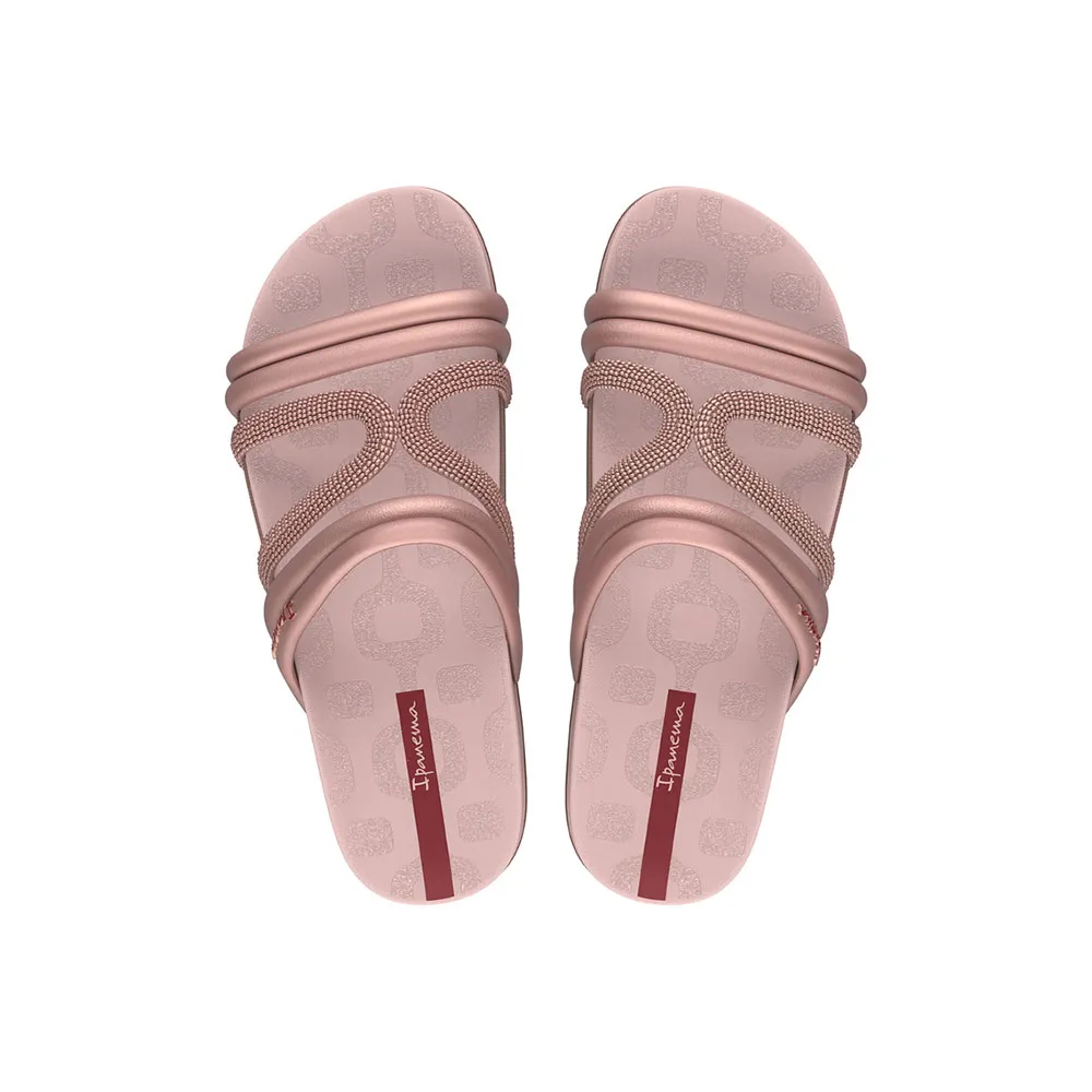 Jednakże, delikatny wygląd nie może być pominięty, dlatego Ipanema Walk Slide ma podeszwę z cechami komfortu, ale z cienkimi i delikatnymi paskami, które łączą tekstury między polerowanymi wykończeniami a dżetami, dodając jeszcze większej wartości produktowi.