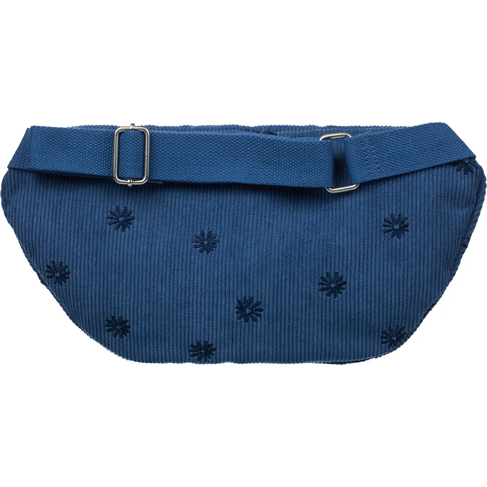 Fabric:Embroidered corduroy, Compartments:1 main zip-up compartment, 1 interior smaller zip-up pocket, Straps:Adjustable Cotton webbing belt, Metal hardware, ROXY metal plate, Size:5´´ (H) x 21.6´´ (W) x 4.7´´ (D) / 13 (H) x 55 (W) x 12 (D) cm, Volume:8.5 L.